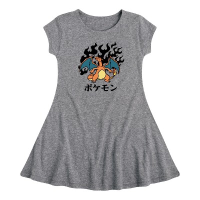 Girls' Pokémon Character Grid Fit & Flair Cap Sleeve Graphic Dress - Heather Navy - Medium