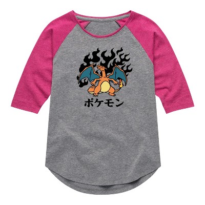 Girls' - Pokémon - Charizard Flash Fire Shirt Tail Raglan Graphic T-shirt