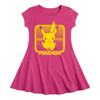 Girls' Pokémon Diamond Pikachu Fit & Flair Cap Sleeve Graphic Dress - Heather Fuchsia - Small