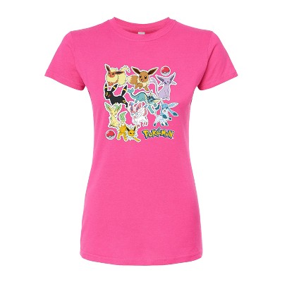 Girls' Pokémon Eeveelution Stickers Short Sleeve Boxy Graphic T-Shirt - Light Pink - X-Large
