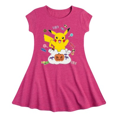 Girls' Pokémon Electric Type Fit & Flair Cap Sleeve Graphic Dress - Heather Fuchsia - Medium