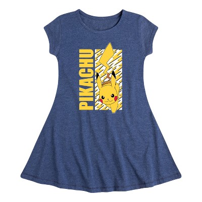 Girls' Pokémon Electric Type Fit & Flair Cap Sleeve Graphic Dress - Heather Navy - Medium