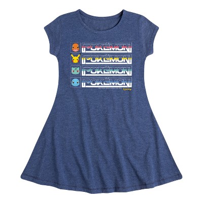 Girls' Pokémon Gotta Catch Em All Starter Pokémon Fit & Flair Cap Sleeve Graphic Dress - Heather Navy - Medium