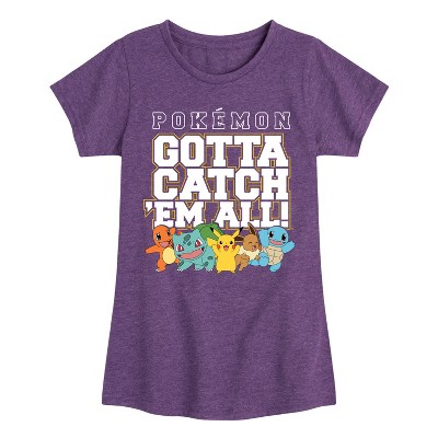 Girls' Pokémon Gotta Eat Em All Fitted Short Sleeve Graphic T-Shirt - Heather Purple - Medium