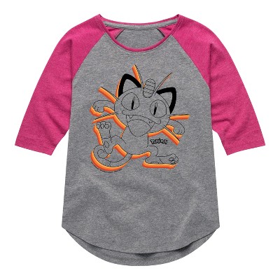 Girls' - Pokémon - Happy Meowth Retro Shirt Tail Raglan Graphic T-shirt