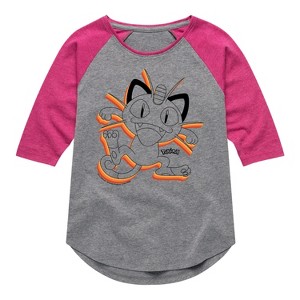 Girls' - Pokémon - Happy Meowth Retro Shirt Tail Raglan Graphic T-shirt - 1 of 4