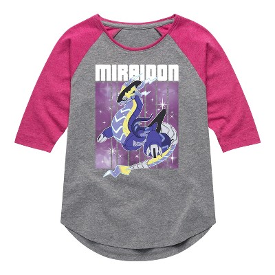 Pokémon - Miraidon Legend - Youth Girls Raglan Graphic T-Shirt - Celebrate the essence of Pokemon's Pokémon with officially licensed apparel featuring unique designs crafted exclusively by Hybrid Apparel. Each piece brings beloved characters, iconic imagery, and memorable moments to life, offering Pokémon fans a one-of-a-kind way to showcase their passion.