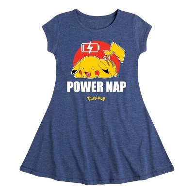 Girls' Pokémon Neon Pikachu Fit & Flair Cap Sleeve Graphic Dress - Heather Navy - Medium