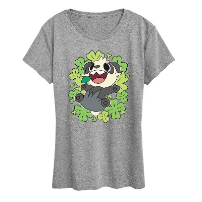 Girls' Pokémon Pancham Shamrocks Collage Fitted Short Sleeve Graphic T-Shirt - Heather Grey - Small