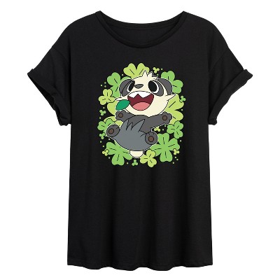 Girls' Pokémon Pancham Shamrocks Collage Short Sleeve Boxy Graphic T-Shirt - Black - Small