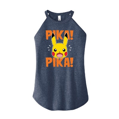 Girls' Pokémon Pika Pika Scared Fitted Short Sleeve Graphic T-Shirt - Heather Navy - Large