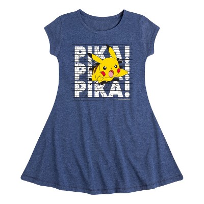 Girls' Pokémon Pika! Pika! -Youth Girls Fit And Flare Dress Fit & Flair Cap Sleeve Graphic Dress - Heather Navy - Small