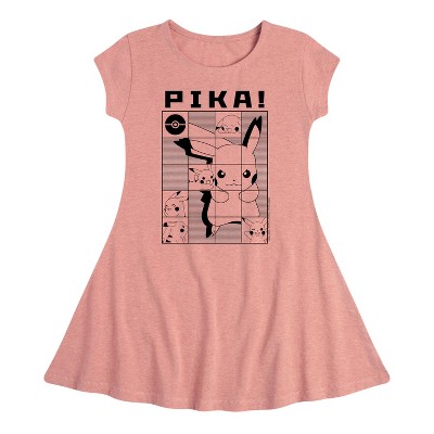 Girls' Pokémon Pika! Pika! -Youth Girls Fit And Flare Dress Fit & Flair Cap Sleeve Graphic Dress - Heather Fuchsia - Small
