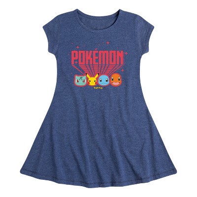 Girls' Pokémon Pikachu Boxes Fit & Flair Cap Sleeve Graphic Dress - Heather Navy - Medium