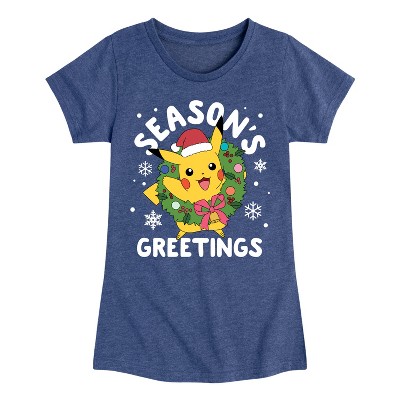 Girls' Pokémon Pikachu Group In Circle Fitted Short Sleeve Graphic T-Shirt - Heather Navy - Small