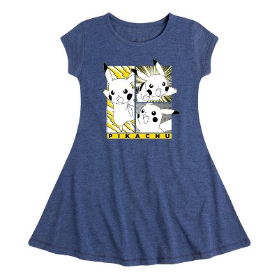 Girls' Pokémon Pikachu Outline Fit & Flair Cap Sleeve Graphic Dress - Heather Navy - Small