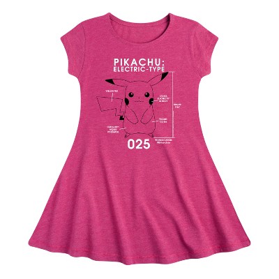 Girls' Pokémon Pikachu Pattern Fit & Flair Cap Sleeve Graphic Dress - Heather Fuchsia - Small