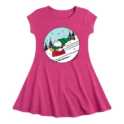 Girls' Pokémon Pikachu Sled Fit & Flair Cap Sleeve Graphic Dress - Heather Fuchsia - Medium