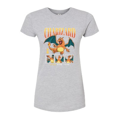 Pokémon - Pokemon Charizard Collegiate - Girls Fitted Short Sleeve T-Shirt - Celebrate the essence of Pokemon's Pokémon with officially licensed apparel featuring unique designs crafted exclusively by Hybrid Apparel. Each piece brings beloved characters, iconic imagery, and memorable moments to life, offering Pokémon fans a one-of-a-kind way to showcase their passion.