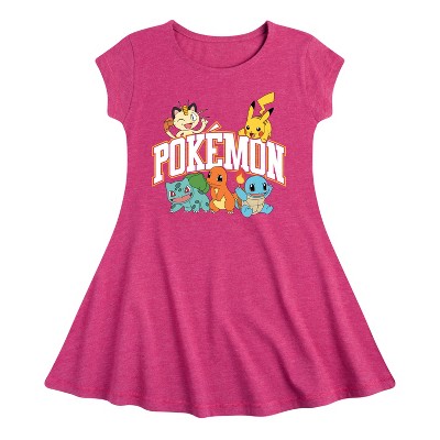 Girls' Pokémon Psyduck Spiral Fit & Flair Cap Sleeve Graphic Dress - Heather Fuchsia - Medium