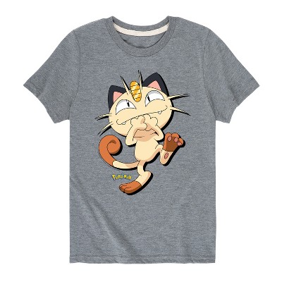Girls' Pokémon Shenanigans Meowth Fitted Short Sleeve Graphic T-Shirt - Heather Grey - X-Large