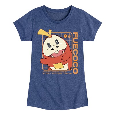 Girls' Pokémon Sprigatito Stats Fitted Short Sleeve Graphic T-Shirt - Heather Navy - X-Large