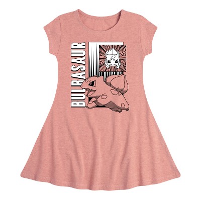 Girls' - Pokémon - Squirtle, Bulbasaur, & Charmander Group Fit & Flair Cap Sleeve Graphic Dress