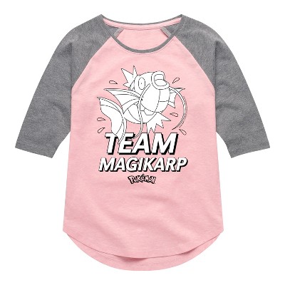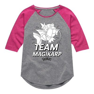 Pokémon - Team Magikarp - Girls Raglan Graphic T-Shirt - Celebrate the essence of Pokemon's Pokémon with officially licensed apparel featuring unique designs crafted exclusively by Hybrid Apparel. Each piece brings beloved characters, iconic imagery, and memorable moments to life, offering Pokémon fans a one-of-a-kind way to showcase their passion.