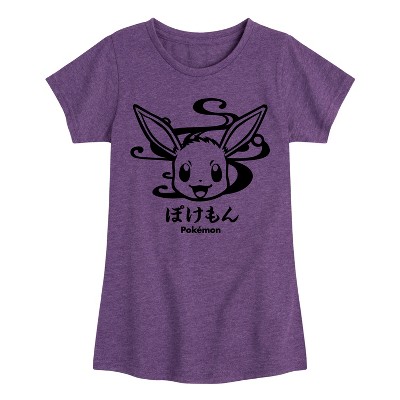 Girls' Pokémon Wagara Pikachu Eevee Group Fitted Short Sleeve Graphic T-Shirt - Heather Purple - X-Large