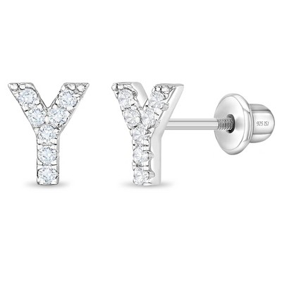 Girls' Polished Initial Letter Initial Screw Back Sterling Silver Earrings - Y - In Season Jewelry