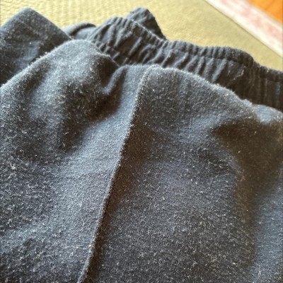 Super soft pant that looks dressier than your typical sweat pants. I did wash them inside out to prevent peeling and it did help a bit.