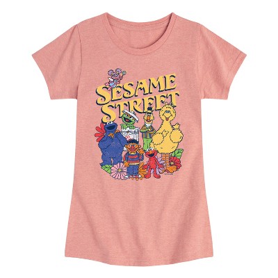 Girls' Sesame Street SS Group Muted Fitted Short Sleeve Graphic T-Shirt - Desert Pink - Medium