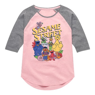 Girls' Sesame Street SS Racing Fitted Short Sleeve Graphic T-Shirt - Heather Grey - Medium