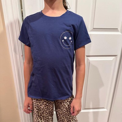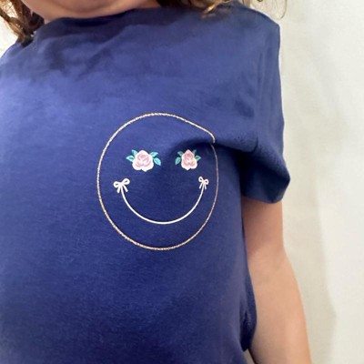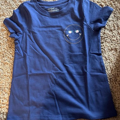 Girls' Short Sleeve 'Smiley' Graphic T-Shirt - Cat & Jack™ Navy Blue - 2 of 4Girls' Short Sleeve 'Smiley' Graphic T-Shirt - Cat & Jack™ Navy Blue - 3 of 4Girls' Short Sleeve 'Smiley' Graphic T-Shirt - Cat & Jack™ Navy Blue - 4 of 4