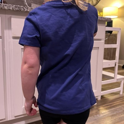 [This review was collected as part of a promotion.] I purchased this adorable blue shirt with a smiley for my four year old who is about 36 inches and weighs about 35 pounds in a size extra small. I would say the fit is good but seems smaller than other shirts in the same size. The material is a bit thin but the design of the smiley face is super cute. My daughter shared “the shirt is soo cute and comfy!” Overall, this is a nice shirt