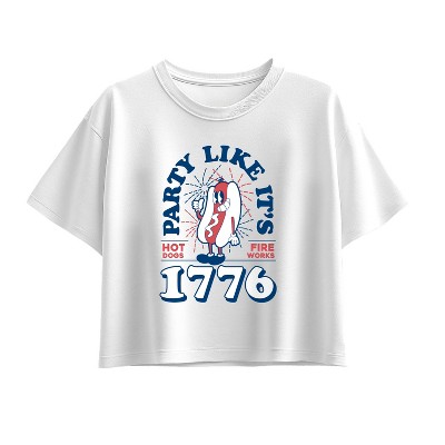 Girls' SpongeBob SquarePants Doodle USA Short Sleeve Boxy Graphic T-Shirt - White - X-Large