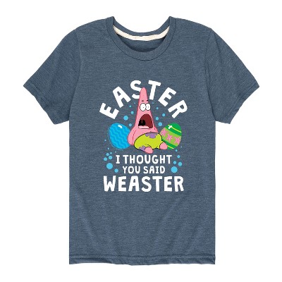 SpongeBob Squarepants - Easter Weaster - Toddler And Youth Girls Short Sleeve Graphic T-Shirt - Dive into the fun of Bikini Bottom with SpongeBob SquarePants graphic apparel! Featuring colorful designs of SpongeBob, Patrick, Squidward, Sandy, and more, this collection brings the show's quirky humor and unforgettable moments to life. Perfect for fans of all ages, these pieces add a splash of personality to any wardrobe.