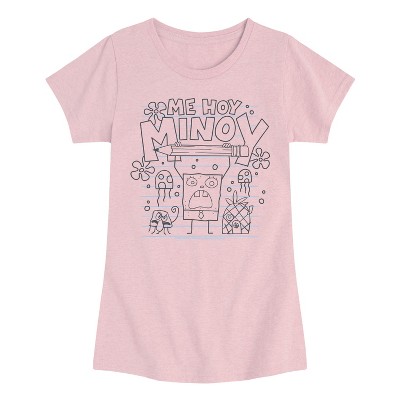 Girls' SpongeBob SquarePants Goofy Goober Fitted Short Sleeve Graphic T-Shirt - Heather Pink - Medium