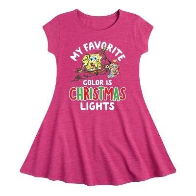 SpongeBob SquarePants - Let It Snow - Toddler And Youth Girls Fit And Flare Dress - Dive into the fun of Bikini Bottom with SpongeBob SquarePants graphic apparel! Featuring colorful designs of SpongeBob, Patrick, Squidward, Sandy, and more, this collection brings the show's quirky humor and unforgettable moments to life. Perfect for fans of all ages, these pieces add a splash of personality to any wardrobe.
