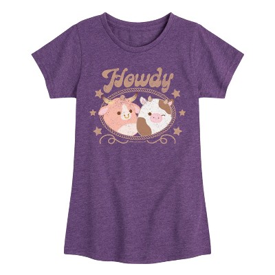 Girls' Squishmallows Mallow Vibes Fitted Short Sleeve Graphic T-Shirt - Heather Purple - Medium
