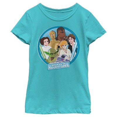 • Own the galaxy while you're wearing this unique girls' graphic tee design from Star Wars!