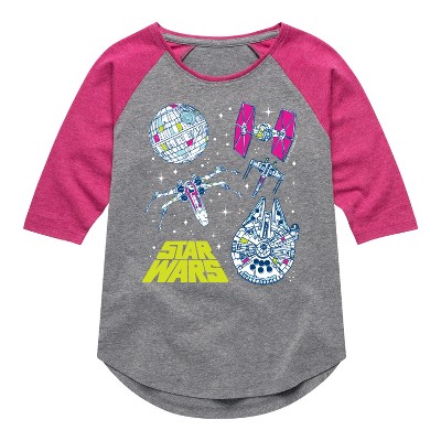 Girls' - Star Wars - Millennium Falcon, Death Star, & Ships Fitted Short Sleeve Graphic T-Shirt