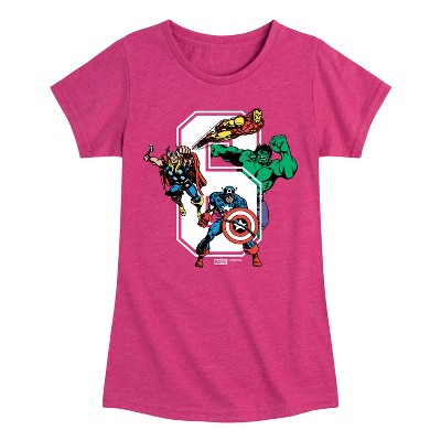 Girls' Strawberry Shortcake Vintage Stickers Style Fitted Short Sleeve Graphic T-Shirt - Heather Fuchsia - Medium