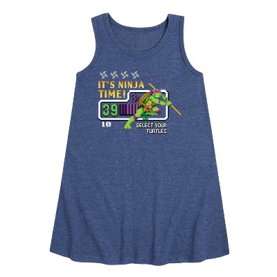 Teenage Muntant Ninja Turtle - Its Ninja Time Donnie - Toddler And Youth Girls Fit And Flare Dress - Unleash your inner hero with Teenage Mutant Ninja Turtles graphic apparel, featuring bold and colorful designs of the iconic heroes in a half shell—Leonardo, Donatello, Raphael, and Michelangelo. Perfect for fans of all ages, this collection celebrates the action-packed adventures, brotherhood, and fun-loving spirit of these legendary sewer-dwelling ninjas.
