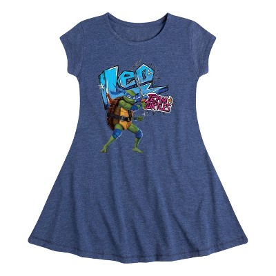 Teenage Mutant Ninja Turtles: Mutant Mayhem - Donatello, Raphael, Leonardo, & Michelangelo - Toddler And Youth Girls Fit And Flare Dress - Unleash your inner hero with Teenage Mutant Ninja Turtles graphic apparel, featuring bold and colorful designs of the iconic heroes in a half shell—Leonardo, Donatello, Raphael, and Michelangelo. Perfect for fans of all ages, this collection celebrates the action-packed adventures, brotherhood, and fun-loving spirit of these legendary sewer-dwelling ninjas.