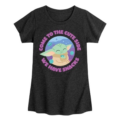 Girls' The Mandalorian Grogu Star Wars Fitted Short Sleeve Graphic T-Shirt - Heather Black - Small