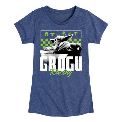 Girls' The Mandalorian Grogu Star Wars Fitted Short Sleeve Graphic T-Shirt - Heather Navy - Medium