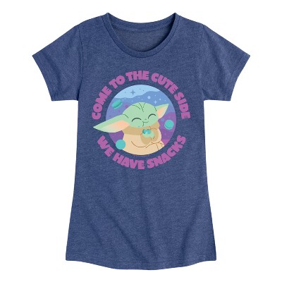 Girls' The Mandalorian Im With Mando Fitted Short Sleeve Graphic T-Shirt - Heather Navy - Medium