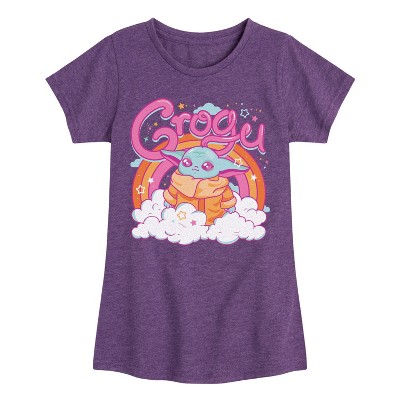 Girls' The Mandalorian Where Dad Goes I Go Fitted Short Sleeve Graphic T-Shirt - Heather Purple - Medium