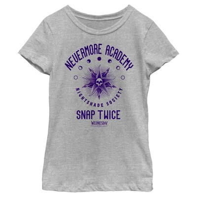 • Own the darkness in style with this unique girls' graphic tee design from Wednesday.